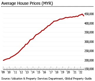 Malaysia’s average house price stood at MYR 438,967 (US$103,076) over the same period.