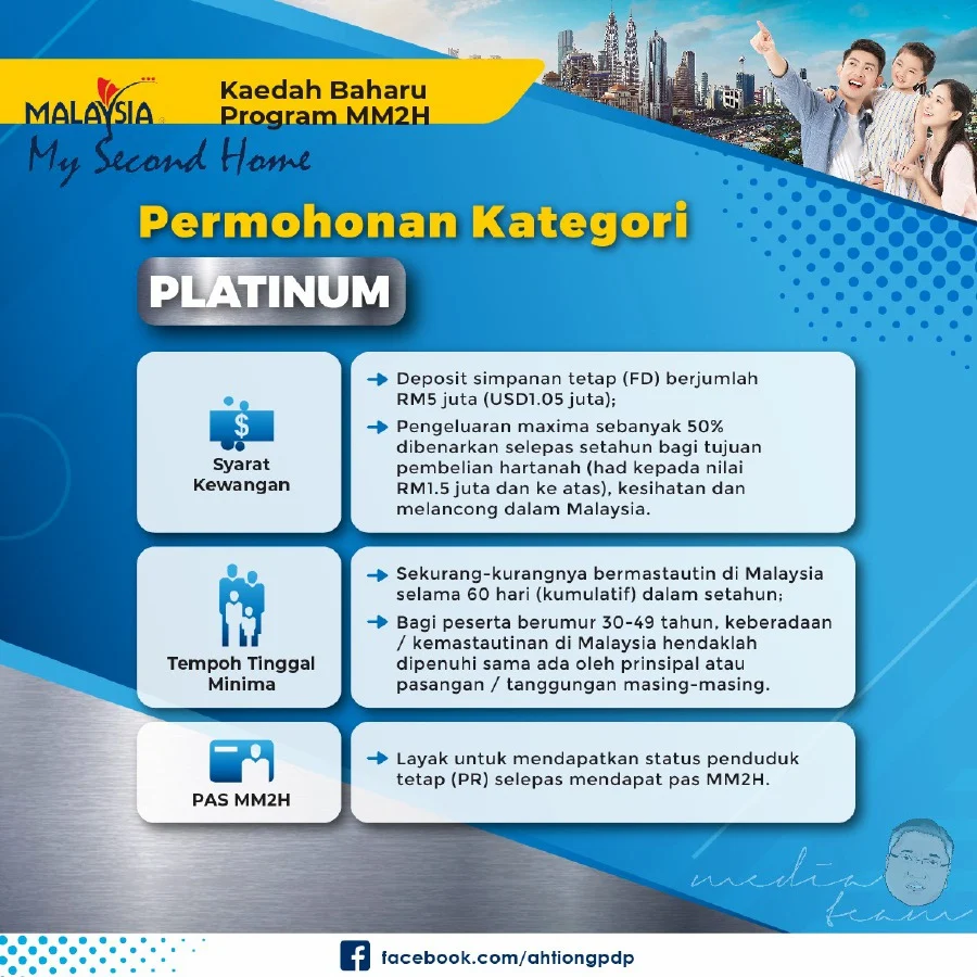 Platinum applicants must reside in Malaysia for a cumulative total of at least 60 days a year.